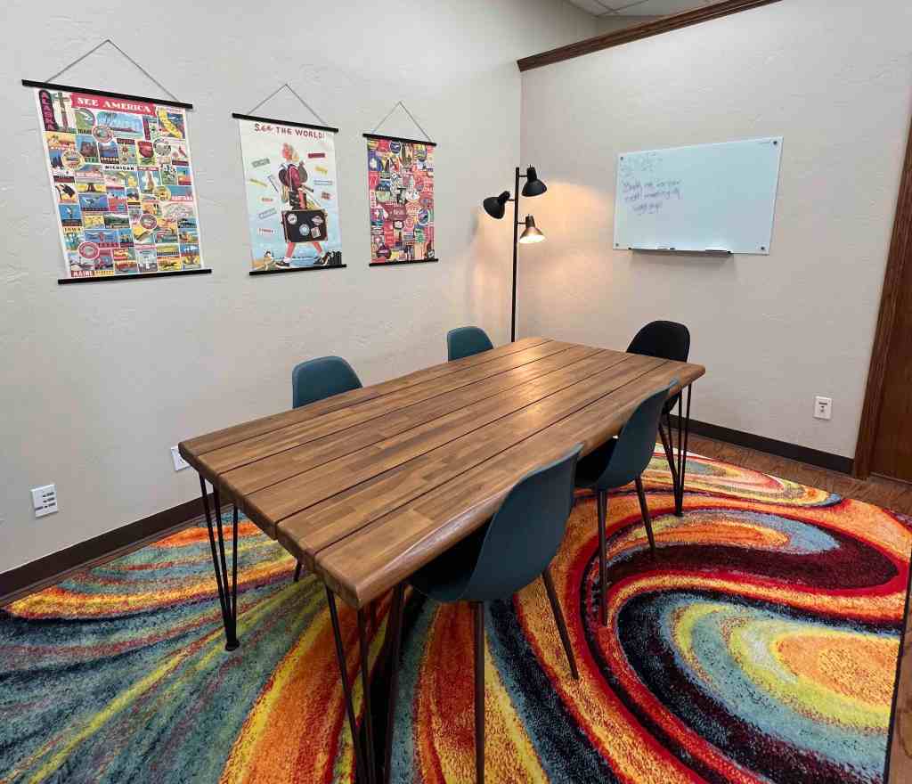 $35 per hour (1 hour minimum Monday – Friday, 8:30a – 9p) (2 hour minimum on weekends) Available as an add on to Wonder Room weekend bookings and is included in the Big Yay package. Need an all day meeting? Ask us about a day rate for additional savings or a recurring booking for a discount.
